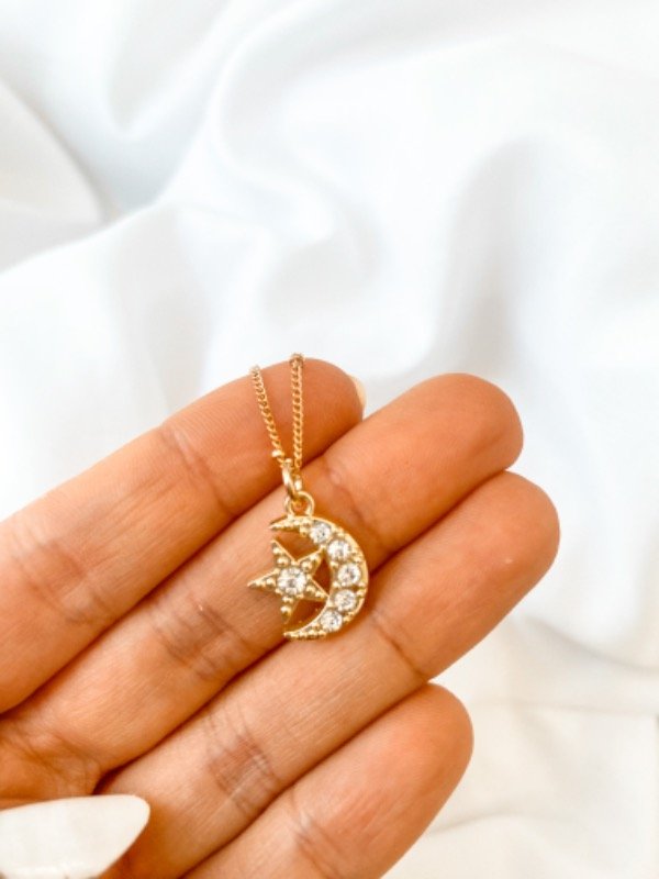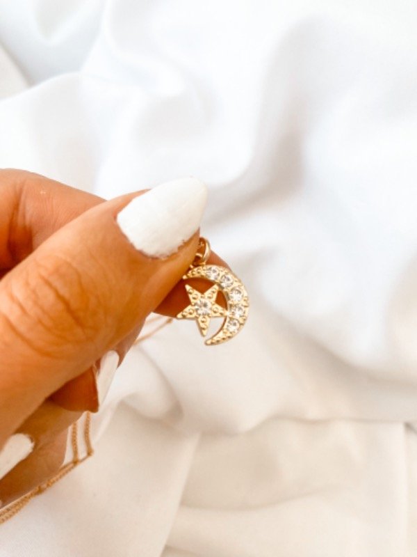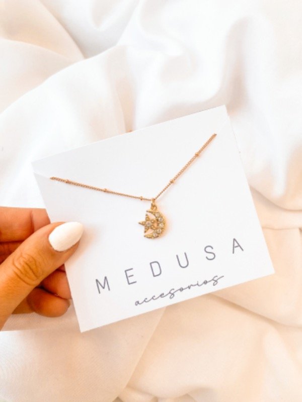 >> Cadenita con bolitas dije de Luna y Estrella